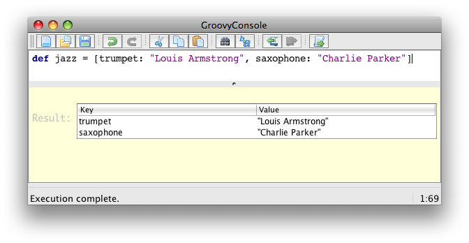 The Groovy Swing console will execute that script on startup, injecting a transforms list in the binding of the script, so that you can add your own script results representations. In our case, we transform the Map into a nice-looking Swing JTable. And we’re now able to visualize maps in a friendly and attractive fashion, as the screenshot below shows: